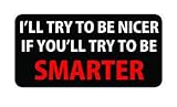 (3) I'll Try to Be Nicer If You'll Try to Be Smarter Funny Hard Hat / Helmet Stickers available on February 04 2015 from Amazon for 4.99
