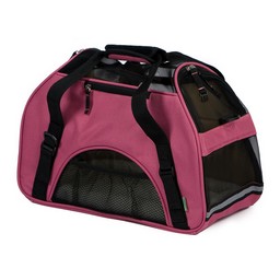 Comfort pet carrier * Airline compliant * Fleece travel bed is removable and easy to wash * Safety belt loop allows carrier to be restrained with vehicle seatbelt * Superior ventilation * Multiple convenient pockets * Padded shoulder strap * Rose wine * Large * 19