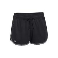 The women's Under Armour 'Tech' training shorts are designed to offer completely unrestricted movement for excellent mobility and comfort. Constructed from a soft-textured lightweight Under Armour Tech™ fabric the shorts feature UA's signature Moisture Transport System which actively wicks moisture away from the skin to keep you cool dry and comfortable throughout your workout. Anti-odour technology in the fabric combats naturally occurring odours and the running shorts also feature a skinny ribbed waistband with a draw-cord for a customised low-profile fit and a slightly shaped hem for even greater mobility. - L.R. Features: Under Armour women's 'Tech' training shorts in black and silver Made from a soft-textured lightweight Under Armour Tech™ fabric Under Armour's Moisture Transport System actively wicks moisture away from the skin to keep you cool dry and comfortable Anti-odour technology combats natural odours Skinny waistband and a draw-cord for a customised low-profile fit Slightly shaped hem for greater mobility 3 inch seam 100% Polyester