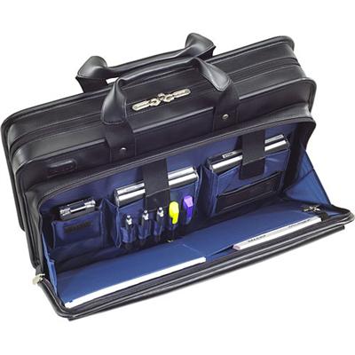 The padded laptop compartment features shock absorbing foam to reliably protect laptops up to 16". A comprehensive business work space includes all of the compartments you need to carry files, business cards, keys, storage drives and other on the go essentials. Self standing case includes a contoured, nonslip shoulder strap for an ergonomic fit. The traditional top loading design lets you access your laptop through the semi opened compartment without exposing the contents of the bag. An exterior water resistant treatment protects the contents of your bag from the elements for added protection. p