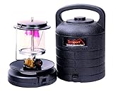 Lantern features: Heat resistant globe, baked enamel hood, metal socket injector, pressure regulator brass valve, handle, uses 16.4 oz. or 14.1 oz. disposable propane fuel cylinder (not included), burns 6 hours at maximum setting Carry case features: Constructed of molded high density polyethylene Double Mantle Propane Lantern and Carry Case Combo TexSport Propane Lantern 14216 Portable Lights