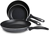 SET INCLUDES: 8 in. fry pan, 9.5 in. fry pan and an 11 in. fry pan HEAT MASTERY SYSTEM: T-fal's Heat mastery system is a three ingredient recipe for perfectly delicious cooking results every time... superior and longer-lasting non-stick coating, an anti-warping, even heat base and patented Thermo-Spot technology THERMO-SPOT INDICATOR: The ring around the spot turns solid red to show when pans are perfectly preheated and ready for ingredients to be added-proper preheating is key to sealing in flavor and cooking food evenly DURABLE NONSTICK: Superior ProGlide toxin-free nonstick interior and exterior stands up to rigorous everyday cooking; allows for cooking without frustrating stuck-on messes RIVETED HANDLES & EVEN HEAT BASES: Stay-cool handles are comfortable and secure; even heat bases ensure superior heat distribution for perfect results every meal USE & CARE: Suitable for all stove tops (except induction); oven safe up to 350°F; dishwasher safe; PFOA, lead, and cadmium free; Lifetime Limited warranty Experience T-fal's Heat Mastery System, a three ingredient recipe for perfectly delicious cooking results every time…superior and longer-lasting non-stick coating, an anti-warping, even heat base and patented Thermo-Spot technology. From Grandma’s tried-and-true recipes to new ideas from a favorite cooking show, enjoy more Instagram-worthy moments with T-fal Specialty nonstick cookware. The user-friendly cookware features durable aluminum construction that heats quickly and evenly for thorough all-over heat. It also provides a step-above-the-rest ProGlide toxin free nonstick surface (inside and out) that stands up to rigorous everyday use to consistently prevent food from sticking. Experience both delicious slide-from-the-pan successful results and simple cleanup—no more tedious scrubbing (or scowling) at the sink needed with T-fal Specialty nonstick cookware. For added convenience, T-fal makes the important step of pre-heating practically foolproof. The Thermo-Spot heat indicator features a ring around the center that turns solid red to indicate when pans are properly pre-heated, which is key for sealing in natural juices and flavor and cooking food evenly. Oven safe and dishwasher safe, T-fal Specialty nonstick cookware offers a versatile assortment of pots and pans—perfect for anything from browning and frying to searing, sautéing, steaming, slow cooking and more.