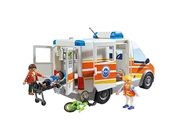 Respond to local emergencies with the Ambulance with Siren Nothing can stop this rescue vehicle thanks to its flashing lights and siren Once at the scene, place the injured patient on the stretcher and load him into the ambulance bay through the back doors Medical personnel can enter the vehicle through the sliding side door Kids can access the interior of the ambulance through the removable roofs, allowing for all sorts of play scenarios Respond to local emergencies with the Ambulance with Siren. Nothing can stop this rescue vehicle thanks to its flashing lights and siren. Once at the scene, place the injured patient on the stretcher and load him into the ambulance bay through the back doors. Medical personnel can enter the vehicle through the sliding side door. Kids can access the interior of the ambulance through the removable roofs, allowing for all sorts of play scenarios. Set includes three figures, ambulance, stretcher, bicycle, medical chart, medical equipment, first aid kit, and other accessories. Recommended for ages four to ten.