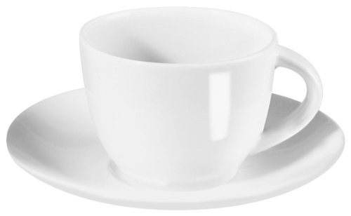 Set of 4 ASA-Selection A Table white bone china espresso cup and saucer ensemble ( 4 cups, 4 saucers) * Extra durable fine bone china * Simple, elegant design on warm white body * Dishwasher safe * Mix with a wide assortment of A Table fine tableware items to create a matching set Entertain in style with these ASA-Selection A Table bone china espresso cups and saucers. Perfect with after dinner dessert, the rich bold taste of espresso complements any favorite sweets, and ASA helps you serve them with elegance. The A Table series from ASA-Selection features an extremely durable, warm white body in a pure and sophisticated design, making it beautiful on a formal table, yet durable enough for the rigorous expectations of everyday use. The quality and grace of this fine bone china is unsurpassed in form and function, while its gorgeous white color offsets the rich natural beauty in your works of art from the kitchen. Cups and saucers ensembles are packed in a set of 4; each little cup hold 2-1/2-Ounce and is accompanied by a matching saucer.