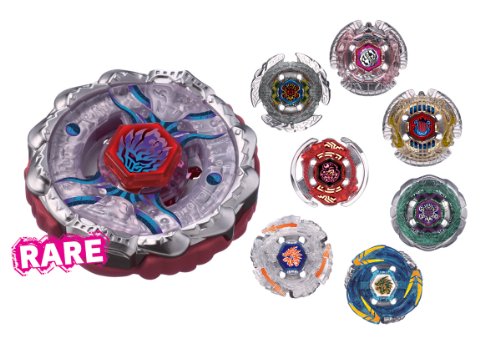 Includes:1 Face,1 Clear Wheel,1 Metal Wheel,1 Track,1 Bottom,1 Tool (NO Launcher) * Authentic Japanese release licensed by TAKARA TOMY * Includes 1x full Beyblade, out of a possible 8 different types from the series (random blind packaging)