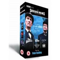 Peter Cushing as Sherlock Holmes with this fantastic 3 DVD set.Peter Cushing had already starred as Sherlock Holmes in Hammer's movie The Hound of the Baskervilles when in 1968 he replaced Douglas Wilmer as Conan Doyle's great detective in the BBC television series. Cushing immediately fashioned his own portrayal of the illustrious figure and is credited with bringing a great authenticity to the role.Hound of the Baskervilles - A classic production of the great detective's most famous case.The most famous Sherlock Holmes story of all finds the sleuth and Watson in windswept Dartmoor. As the moors reverberate with the baying sound of a monstrous creature. Holmes is presented with one of his greatest challenges. Could the legend of a bloodthirsty hound that haunts the Baskerville family really be true?Acclaimed by Holmes enthusiasts for remaining faithful to the original novel this most celebrated Sherlock Holmes adventure was for the first time shot at the Dartmoor locations of Sir Arthur Conan Doyle's original story.A Study in Scarlet - Dr. Watson has his doubts about Sherlock Holmes' boasting claims but two baffling murders allow him to witness the great detective's deductive methods first-hand.The Boscombe Valley MysteryA young man stands in the dock accused of patricide. It seems a clear-cut case until Holmes unravels a chain of old grudges blackmail Australian bushwhackers and a bigamous marriage.The Sign of Four - The ultimate Holmes and Watson adventure has everything: a cannibal a one-legged villain treasure revenge war violent death betrayal... and even romance.The Blue CarbuncleThe discovery of a beautiful diamond inside a Christmas goose leads Holmes and Watson on a trail through deceit and treachery to a most improbable villain...