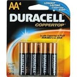 Trusted Everywhere Four-pack for economic value Use in flashlights, radios and recorders Works in pagers, CD players and remote controls Long alkaline battery life for toys and electronic games Duracell is getting better¿and better! Duracell CopperTop is New and improved to meet the growing needs of consumers. The technology of CopperTop has been upgraded to provide advanced performance in popular battery powered devices. Duracell is known for their "CopperTop" batteries. The 1.5V AA battery size is required for many electronic toys, players, pagers, remote controls, etc. Using alkaline batteries like these will provide more product life than rechargeable batteries, although they are usable only once. This package comes with four batteries. What's in the Box One package of four AA batteries.