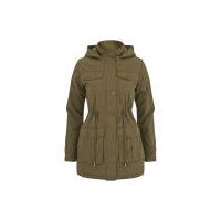 A wardrobe staple Brave Soul present the women's parka in khaki. With a soft cotton construction the padded jacket with long sleeves and tonal lining features a lined hood with funnel neck zip fastening concealed by press stud flap and four buttoned-flap patch pockets to the front in a utility style. For added femininity the 'Dallas' parka offers an elasticated drawstring waist to create a cinched in look and is further accessorised with epaulettes to the shoulders and adjustable cuffs. Branded patch to the left sleeve. - K.N. Brave Soul women's Dallas Parka Material: 100% Cotton. Lining: 100% Polyester Khaki Long sleeves Lined and padded Hood Funnel neck Press stud flap Four utility style pockets to the front Elasticated drawstring waist Shoulder epaulettes Adjustable cuffs Branding to left sleeve