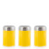 Fun and functional these Colour Set of 3 Dome Canisters from Cook In are the perfect accessories for every day use. With a powder coated steel body these canisters are complete with a stainless steel airtight lid making them durable and tough. Ideal for storing coffee tea or sugar the lid ensures your food will stay fresh. Brighten up you kitchen with these practical and stylish accessories. - GG. Set: 3 Dimensions: H16.5 x Dia 11cm Hand wash only