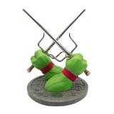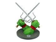From the comic series 'Teenage Mutant Ninja Turtles' comes this original prop replica of Raphael's Sai a museum quality realization of Raphael's signature weapons. Each sai is cast from solid metal that has been chrome-plated and features a leather-wrapped handle ans brass alloy pommel. Sai's can be displayed using the striking `Raphaels's Hands´ stand or can be removed from the stand for closer examination. Includes a cast metal plaque bearing the edition number and a Certificate of Authenticity.
