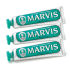 Boasting a fresh peppermint flavour Marvis Classic Strong Mint Toothpaste Triple Pack (3 x 75ml) produces an invigorating tingling sensation. Formulated with fluoride to prevent tooth decay this fantastic toothpaste also targets plaque and tartar whilst keeping your breath fresh. Presented in an elegant tube the rich and creamy paste will keep your teeth protected. - L.M.Directions of Use: Brush twice a day for at least two minutes each time Use in conjunction with mouthwash Use a soft or medium bristled toothbrush Replace your toothbrush every 2-3 months