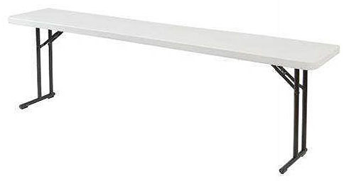 This popular blow-molded lightweight plastic folding table is a top notch crowd pleaser! Its an 18" wide lightweight table with cantilevered comfort style legs that is pitch perfect for any training room; conference room or seminar setup. Standard he..