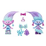 Style their hair with Fuzzy Flair material More than 10 fashion pieces included Includes 2 figures with fashion accessories Includes 2 dolls, 2 outfits, 2 pairs of shoes, 2 pairs of earrings, and 5 accessories Linked together by the loop of brightly colored hair they share, DreamWorks Trolls Satin and Chenille are the most fashion-forward members in town! It's fun to dress these adorable twins in their glitzy, high-fashion outfits and accessories with this set. It comes with DreamWorks Trolls Satin and Chenille figures and removable fashions for them to wear, including earrings and shoes. Clip the ends of their colorful hair together with a barrette to join them, and style their hair with the Fuzzy Flair material. Get ready for dress-up fashion fun! DreamWorks Trolls copyright 2016 DreamWorks Animation LLC. All rights reserved. Hasbro and all related terms are trademarks of Hasbro.