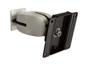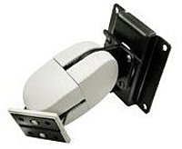 This model includes a double pivot with 180 deg. tilt forward back, 360 deg. Portrait Landscape, pan 180 deg. side to side. Shipped with grey and black plastic covers. Wall Mount Plate or Wall Track accessory recommended.
