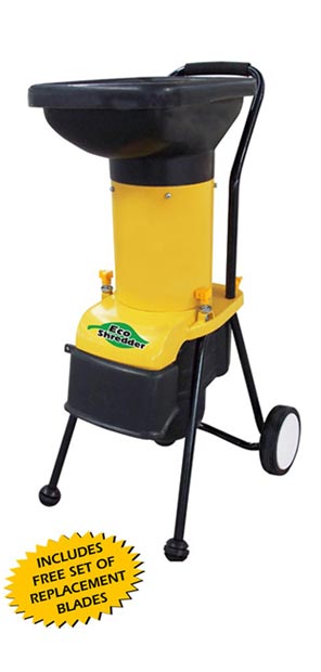 Whether you live in a wooded area that requires constant maintenance of downed limbs, or you own a small yard with a few bushes and trees, the Ecoshredder is up to the task of breaking down yard waste into a fraction of its size.FeaturesThree-way feed makes reducing yard waste a quick and easy process.Three-cycle shredding and mulching system ensures consistant, uniform resultsSafety features include an overload protection switch that will turn off the motor during a jamQuieter and cleaner operation than gas-powered chipper shreddersSeven-inch wheels designed for maximum portabilityCompact design makes it easy to store in a shed or workshopShreds brush, leaves, chips, and limbs up to 1.375 inchesRounded discharge chute makes cleanup and maintenance easySpecifications14-amp, 2.5-horsepower motorRounded chuteV-type bladeTop hopper design10: 1 reduction ratio2,800 RPMSHopper Dimensions: 15.3 x 10.4 inchesSide Chute Dimensions: 1.375 x 2.3 inches