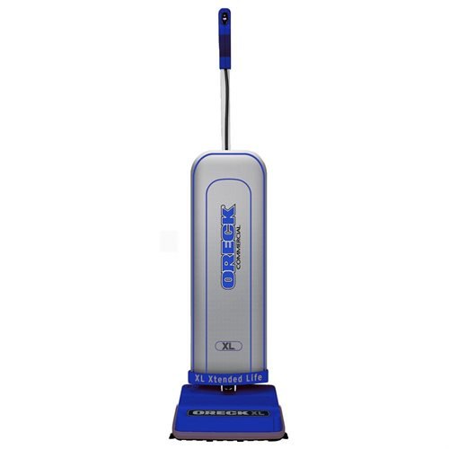 Upright vacuum cleaner with 12-inch-wide cleaning path is better suited for cleaning low pile carpets than typical canister vacuum cleaners and takes up less space for storage Helping Hand handle has received Ease-of-Use Commendation from Arthritis Foundation; on/off switch is located in handgrip for convenience Automatic floor adjustment enables the vacuum cleaner to move between carpets and hard surfaces without changes to manual settings Powerful, high-speed, balanced brush roll with double helix brushes whirls at 6,500 RPM and move debris toward the vacuum inlet for cleaning Measures 6 x 13 x 35 inches (H x W x D); weighs 8.2 pounds The Oreck XL Commercial Upright Vacuum is a commercial grade vacuum that offers all the power and performance you expect from an Oreck. This versatile upright makes it easy to keep your business clean. It gets up close to cabinets and baseboards and fits easily under most furniture, clothes racks, chairs and desks. It can be used on all surfaces including carpet, wood, laminate and tile with no manual height adjustment. Weighing about 9 pounds, it's lightweight and covers a 12" wide area which makes cleaning easy and quick. It has the exclusive Microsweep feature that allows you to switch from carpet to bare floors with no adjustments and a 630 cubic inch “top fill” bag. Cord guard prevents cord damage. Fingertip-controlled on/off switch. Ingenious top-fill design ensures no loss of suction and keeps power at maximum even while bag fills. This model comes with a 1-year commercial warranty as well as a 1-year warranty on the belt.