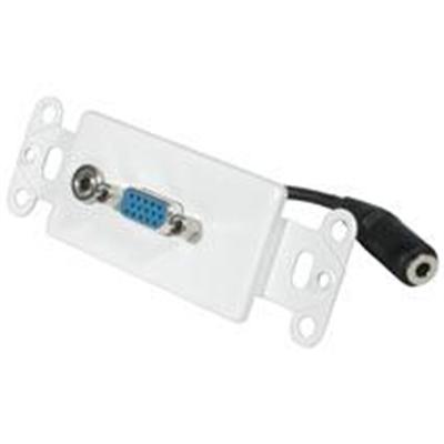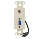 This insert is stamped from 20 gauge steel and painted Ivory to match your room decor. Use it in standard electrical boxes or mud rings and with standard decorative wall plates for easy installation. HD15 female DB-style feed-through connectors provide a secure connection for VGA cables. The 3.5mm jack on the front connects by a 3-inch pigtail to another jack for easier connection of your audio cable. Features: dB Style Feed Through Connectors, HD15 to HD15 Coupler, 3.5 mm Jack With 3"" Pigtail, 20 Gauge Steel, Fits Standard Electrical Boxes, Compatible With Leviton Decora Plates, Use For Home Theater Projectors, Flat Panels, PC Monitor, Ivory"