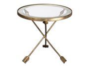 20" Livy Glass, Antiqued Mirror & Gold Leaf Metal Arrow Tripod Accent Side Table Brand: Christmas Central Type: End Tables Finish: Gold Material: Iron Weight: 21