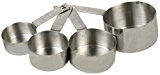 Measuring cup set Heavy gauge top quality 18/8 stainless steel Engineered for precision accuracy to assure consistency in food preparation time and time again Handle is imprinted with the measurement and is pierced to hang for storage 1/4, 1/3,-1/2, 1 cup Measuring cup set is engineered for precision accuracy to assure consistency in food preparation. The handle is imprinted with the measurement and is pierced to hang for storage.