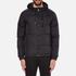 Men?s black quilted jacket from Versace Jeans. Constructed with a padded, quilted design, the coat comprises an adjustable hood boasting a tonal draw cord and silver tone hardware tips, a zip through fastening with a branded pull and long sleeves with elasticated cuffs. The jacket is complete with the signature Versace Jeans embroidered tiger logo appliquéd to the sleeve and gold tone Versace Jeans branding across the reverse. Outer: 100% Polyester. Lining: 100% Polyamide. Padding: 80% Eiderdown, 20% Duck Feathers. Model is 188cm/6'2 and wears a size M/IT 48.