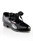 PVC (black patent) and PU (caramel and white) uppers Recent upgrade includes Tele ToneĀ® toe and heel taps on fiberboard Foam padded footbed Brushed micropoly lining for comfort Best seller Best seller. PVC (black patent) and PU (caramel and white) uppers. Recent upgrade includes Tele Tone toe and heel taps on fiberboard. Foam padded footbed. Brushed micropoly lining for comfort. Print cotton socklining. Sculpted pattern features lower side heights and vamp. Flexible outsole with traction grooves and divots. Achilles notch with foam padded sheep skin collar. Eyerows are attached with elastic. Grosgrain ribbon tie. Firm heel counter and light toe box offer support and a snug fit.