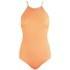 Women's printed swimsuit from MINKPINK with stretch fabric construciton and all over chevron design. With a high neck that cuts away at the shoulders, the 'Sun Kissed Chevron' swimming costume features contrast white trims and thin straps that continue down the back into a criss cross style, tying in a bow at the middle. Complete with charm embellishment. - K.N. 96% Polyamide, 4% Elastane